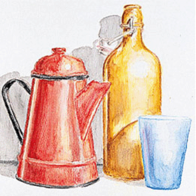 Şişe, sürahi ve bardak ile natürmort...