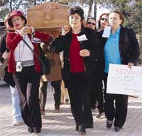 kadınların taşıdığı bir tabutun içinde bulmuş kendini. 2004