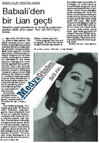 gündü. Çünkü o gün piyasaya çıkan Nokta dergisinde bizim Lian