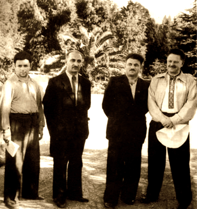Abhaz şair dostları İvan Tarba, Bagrat Şinkuba ve Kumf Lomiya