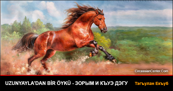«1эу ар хъуын!модэ си шыр къыщ1эфш» жери и щым мэшэсри къуладжэм мак1уэ. А плъырыжми зы т1ысып1э и1энтэкъа, зэк1э хъуынщ1ак1уэр игъуэтакъым. Атк1э плъэщ мыт1к1э плъэщ зырик1 щымлъагъуым, и шым къепсыхщ илъахъэри гъуэлъащ. Плъырым и къыкъуэк1ыгъуэ къасри къаплъэу къышилъагъым, « Тхьэ, Зорым и къуэр къазгъуэтам, си 1уэхуыр зыф1игъак1мэ зэф1эзгъэк1ынур мырам» жери егуыпсысащ. Къыбгъэдэхьари, и щ1ак1уэри тепхъуат, «Ейй!»жери къеджащ. Сэлам зэрахри, Зорым и къуэм,